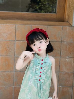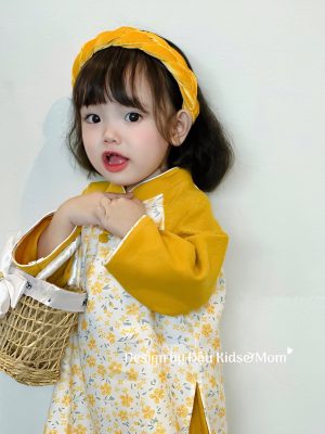 Dễ phối cùng phụ kiện như vòng ngọc trai, khăn vấn, cài tóc hoặc giày sandal cho bé