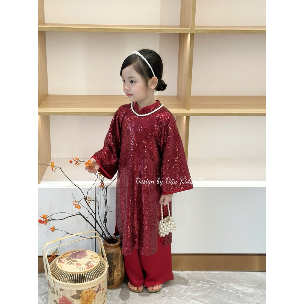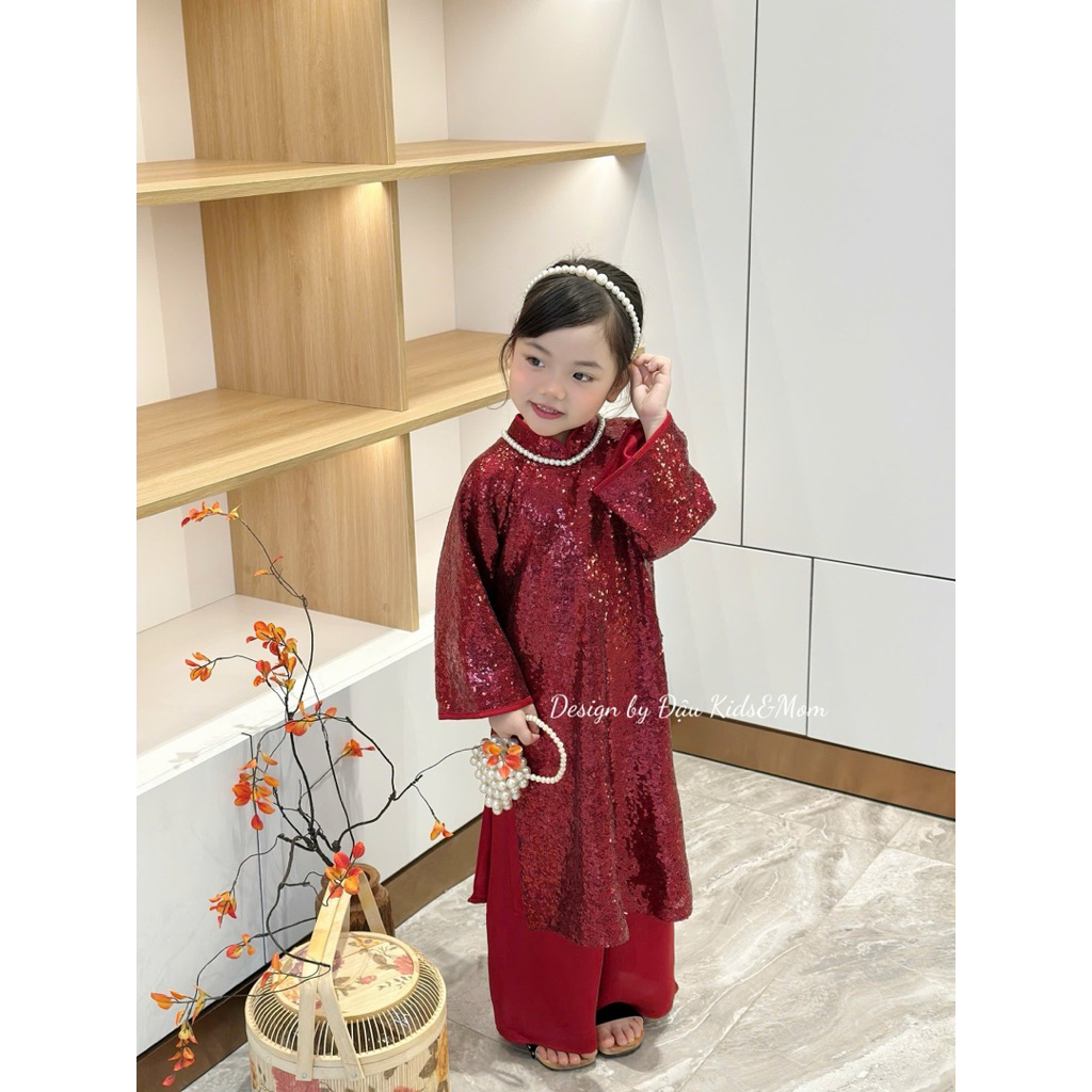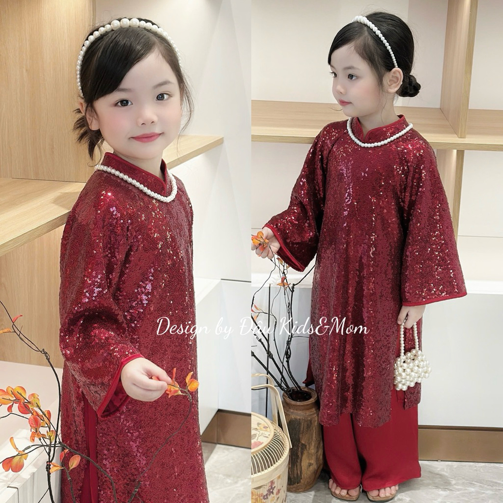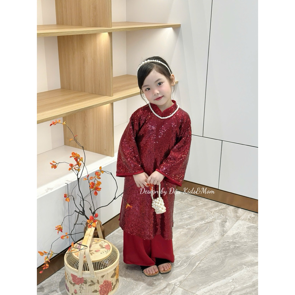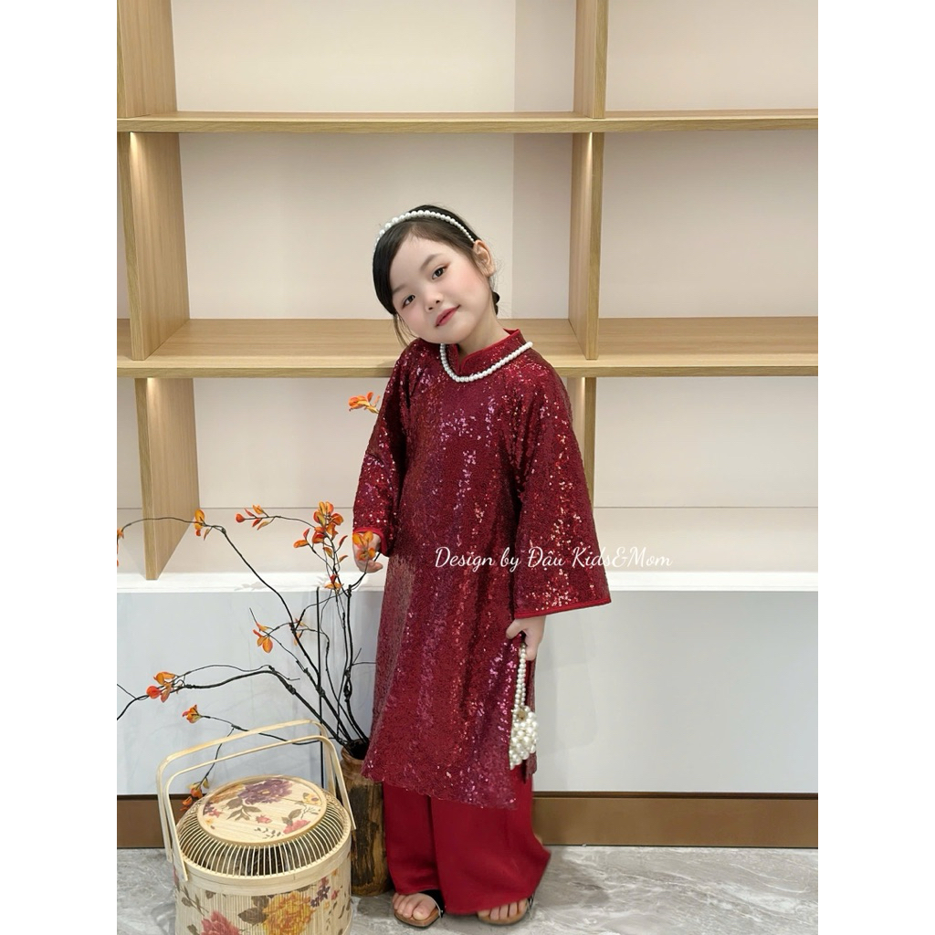 Áo dài kim sa sang trọng cao cấp lót lụa, bé diện vừa xinh vừa thoải mái.