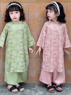 Áo dài Cát Tường – Đậu Kids & Mom là một trong những mẫu áo dài Tết được yêu thích nhất nhờ thiết kế sang trọng, chất liệu cao cấp và bảng màu cực kỳ nổi bật. Bộ sưu tập bao gồm áo dài cho bé trai, bé gái và mẹ, giúp cả gia đình đồng điệu trong mùa Tết.