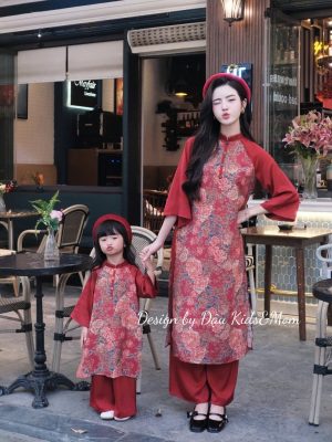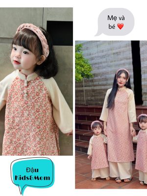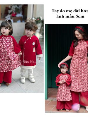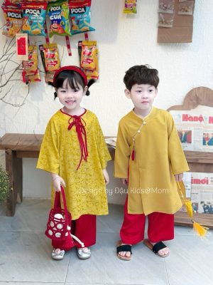 Áo dài Thiên Thanh – Set áo dài cặp cho bé trai, bé gái chất liệu lụa gấm