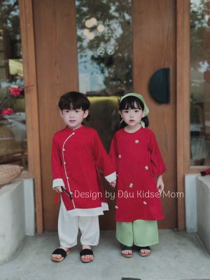 Bộ áo dài bé trai & bé gái màu xanh ngọc đến từ thương hiệu Đậu Kids & Mom mang phong cách thanh lịch – nhẹ nhàng – sang trọng. Thiết kế đồng điệu giữa anh và em, giúp bé lên hình nổi bật, phù hợp cho mùa Tết, chụp ảnh gia đình, lễ hội hoặc những dịp quan trọng tại trường.