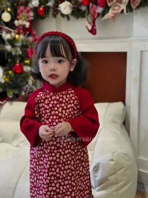 Dáng áo dài nhưng hiện đại, tạo độ “bay” khi bé di chuyển
