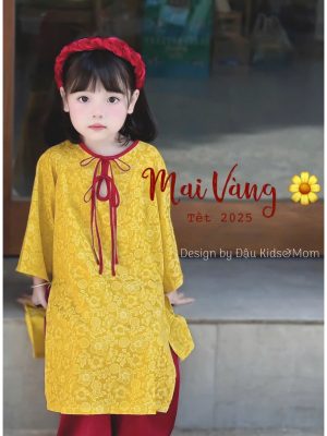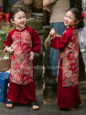 Áo dài Thiên Thanh – Set áo dài cặp cho bé trai, bé gái chất liệu lụa gấm